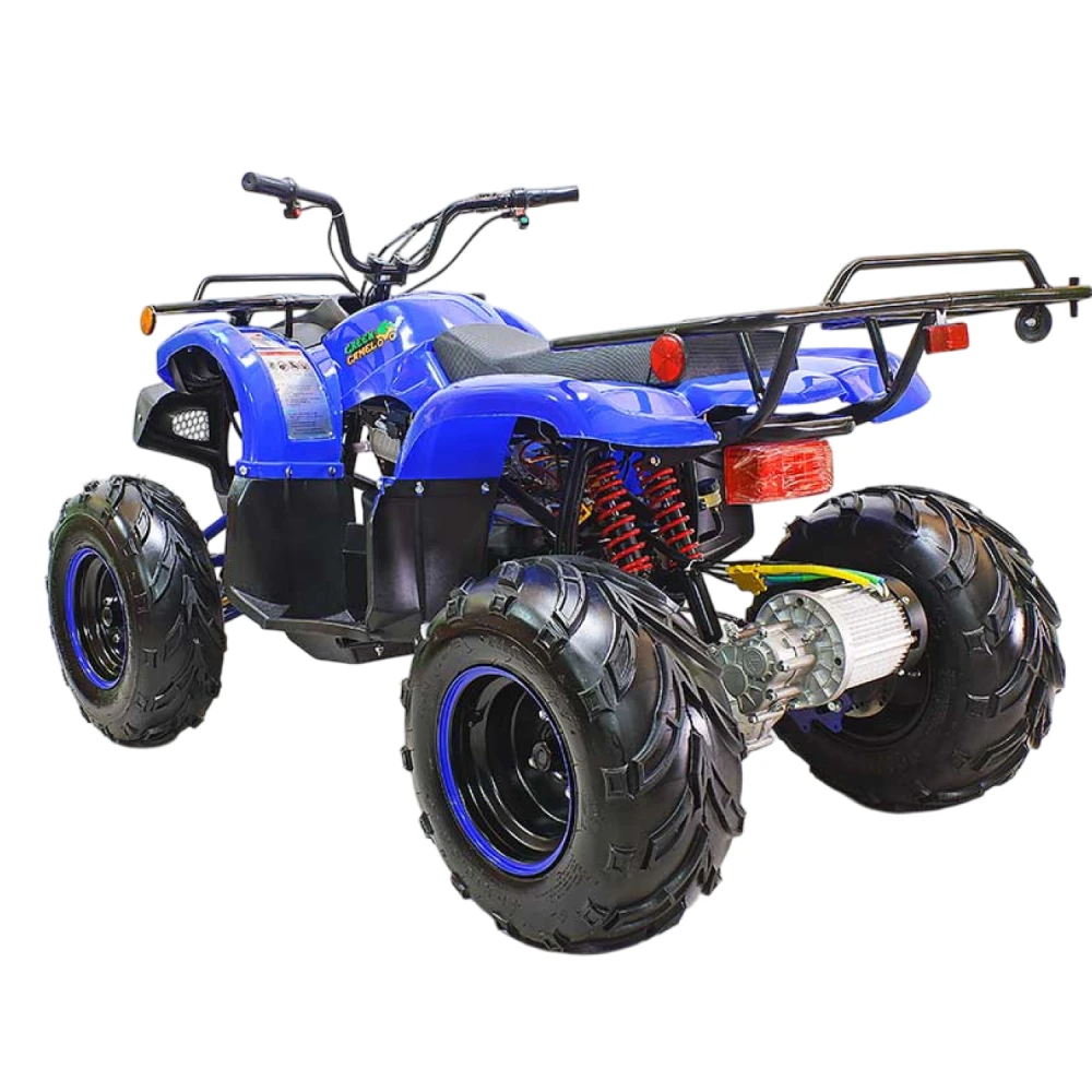 У GreenCamel Caxapa A1520 бесщеточный мотор типа BLDC, на выбор два вида батарей, штатная и более мощная. Разница заключается в запасе хода, ресурса и время зарядки батареи. Пружинные амортизаторы, тип передачи: дифференциал. Тормоза задние: ножной дисковый, передние тормоза барабанные. Пробег на одном заряде от 40 до 80 км. Зависит от выбранной зарядной батареи. У квадроцикла отсутствует спидометр. Максимальная нагрузка 125 кг.