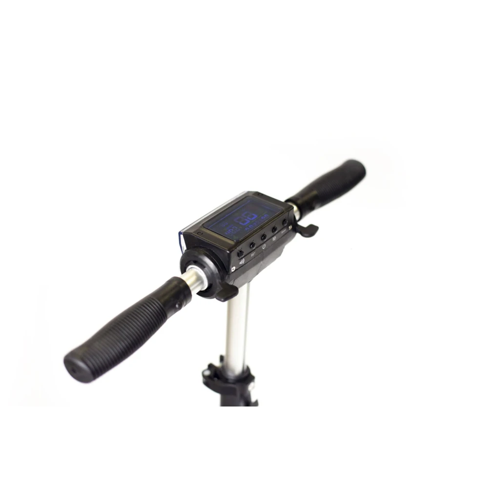 Электросамокат оснащен двумя фонарями спереди и сзади, а также бортовым компьютером с ярким экраном, который отображает всю важную информацию. Высота руля на самокате регулируется, что обеспечивает уменьшение габаритов. С электросамокатом удобно передвигаться как в транспорте общественного движения. так и на такси и на собственном авто.