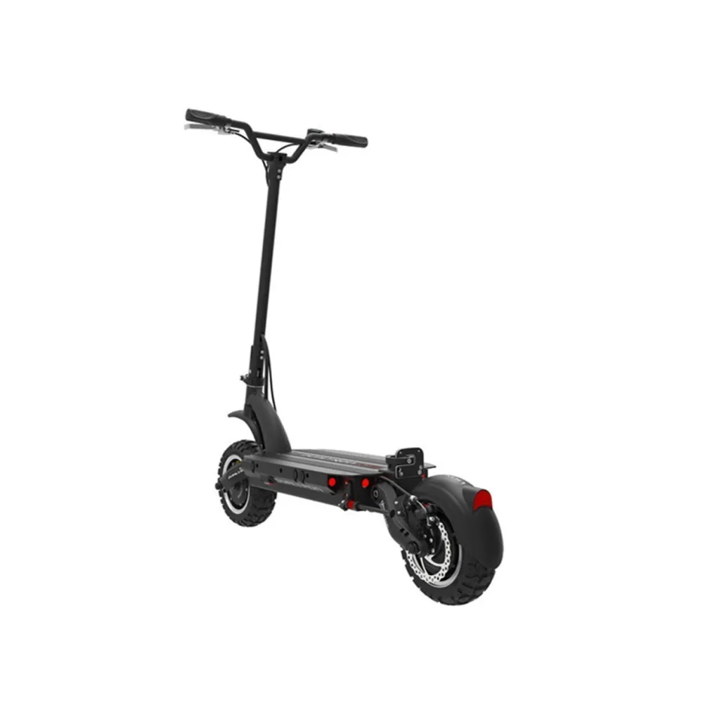 Электросамокат имеет два мотор-колеса, мощность каждого по 2700 Вт. Максимальная скорость 85 км/ч, ее можно сравнить со скоростью автомобиля. При желании спокойного передвижения и в целях экономии заряда, можно легко отключить один мотор. Рама выполнена из высокопрочного и легкого алюминия. Складывается, нет проблем с местом для хранения.