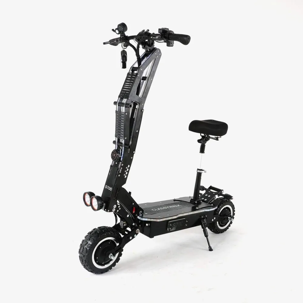 Емкость аккумулятора составляет 28 Ah, мощность двигателя 5600 W и вес 37 кг, что позволяет S700 DRAGON развивать скорость до 80 км/ч на пути до 80 км. Качественные моторы гарантируют ощутимую силу и энергию на дороге. Максимальный нагрузка составляет 150кг. Полный заряд батареи в данной модели - 12,5ч. Рамы электросамоката изготовлены из стали и авиационного алюминия. Электросамокат SLARDAR S700 DRAGON оснащен дисковой гидравлической и электронной тормозной системой, полным приводом и ярким освещением.