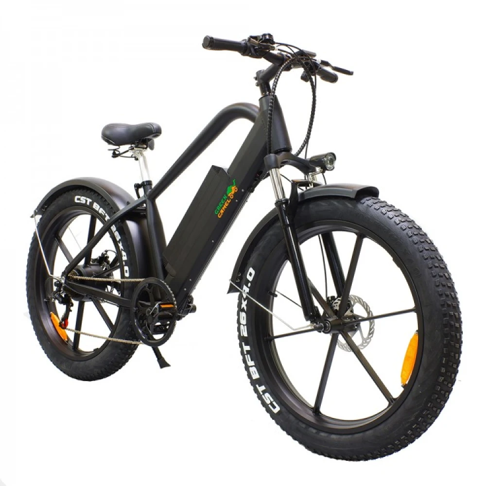 Агрессивный дизайн GreenCamel Хищник притягивает взгляды, усиленная оригинальная алюминиевая рама и большие фэтшины уверенно ведут себя как на городских неровностях, так и на пересеченной местности в пригороде.