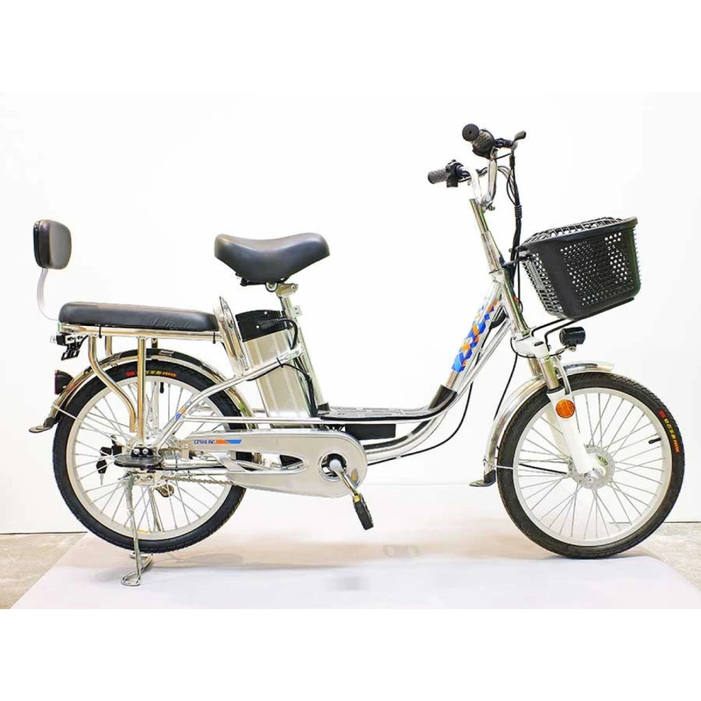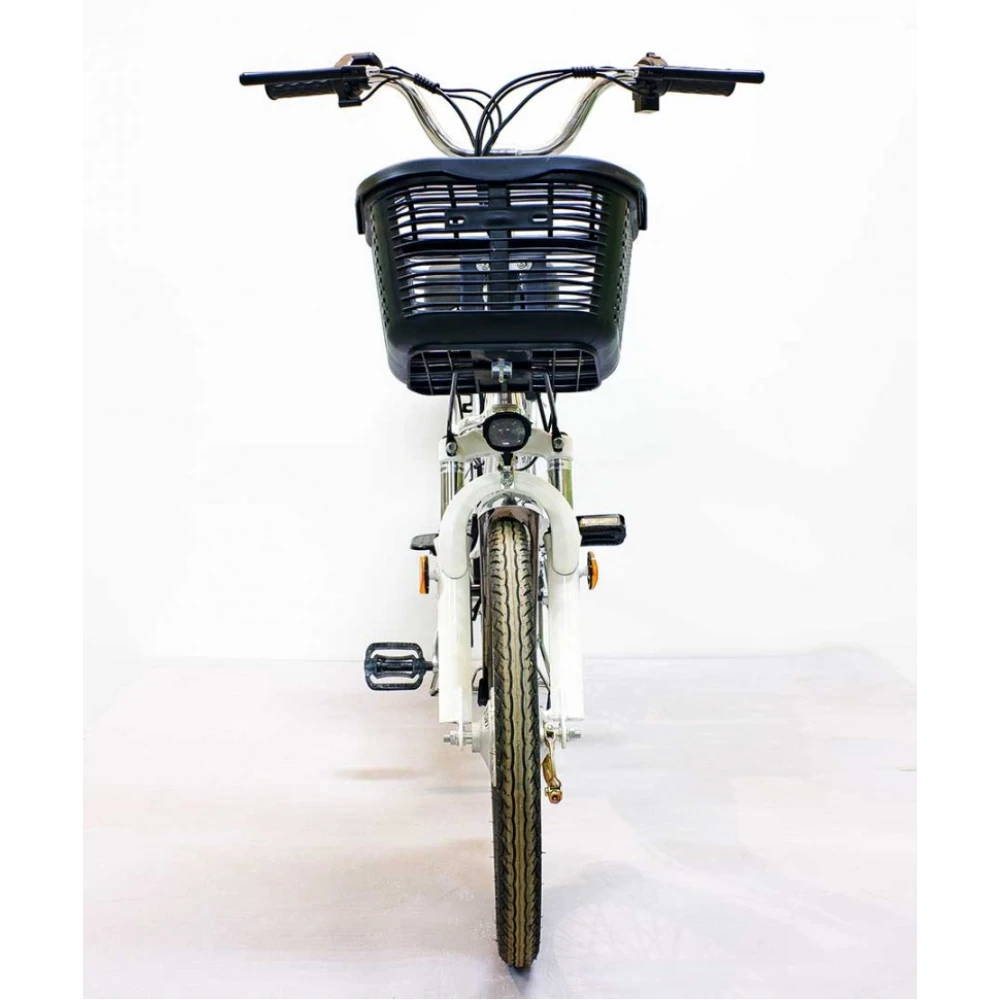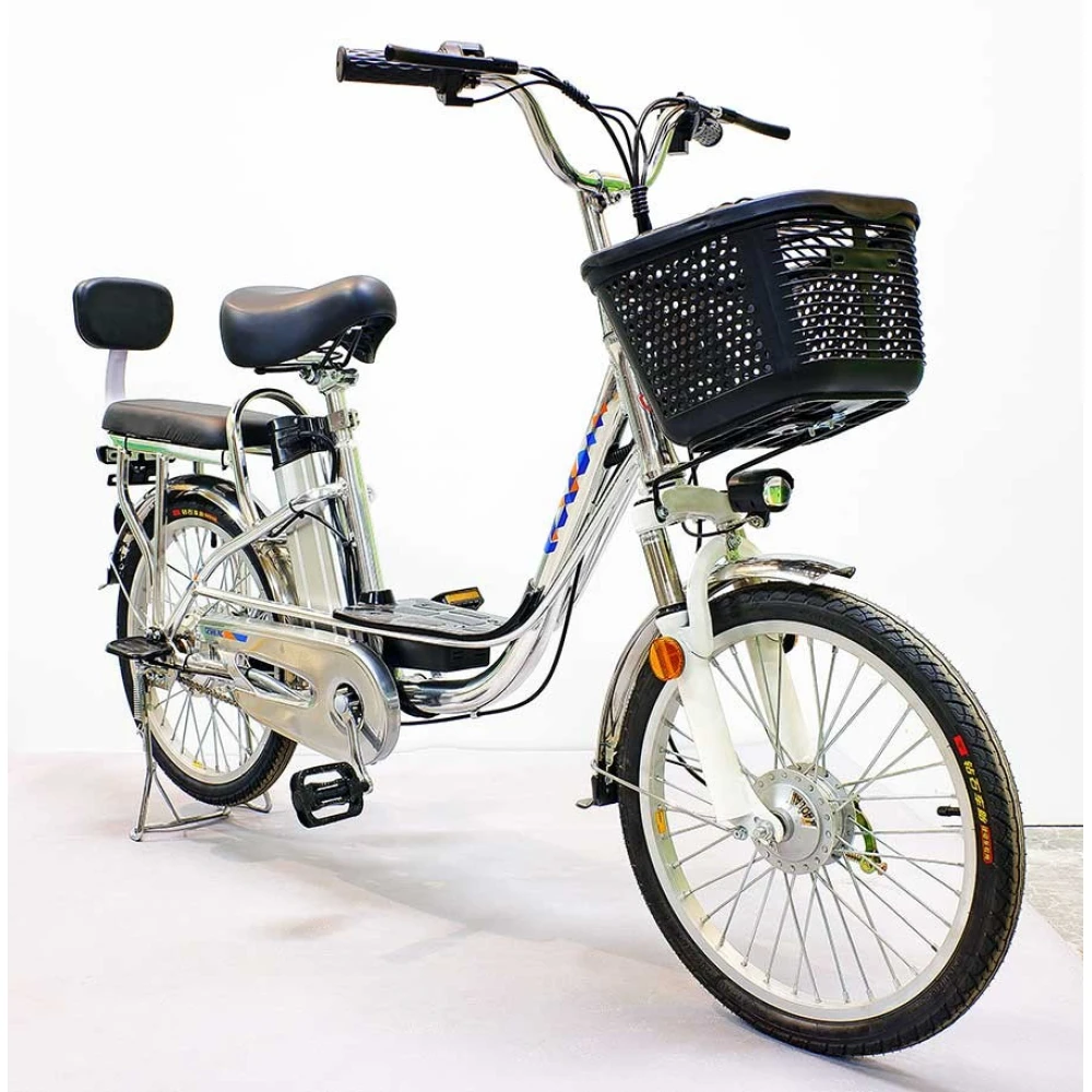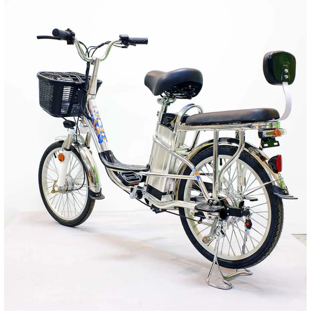 Комфорт и практичность техники обеспечены вместительной передней корзиной, удобной для посещения магазина. Электровелосипед оснащен водительским и пассажирским сиденьем со спинкой. Оба мягкие и удобные, повторяют анатомические части тела, не допускают усталости при передвижении на дальние расстояния.