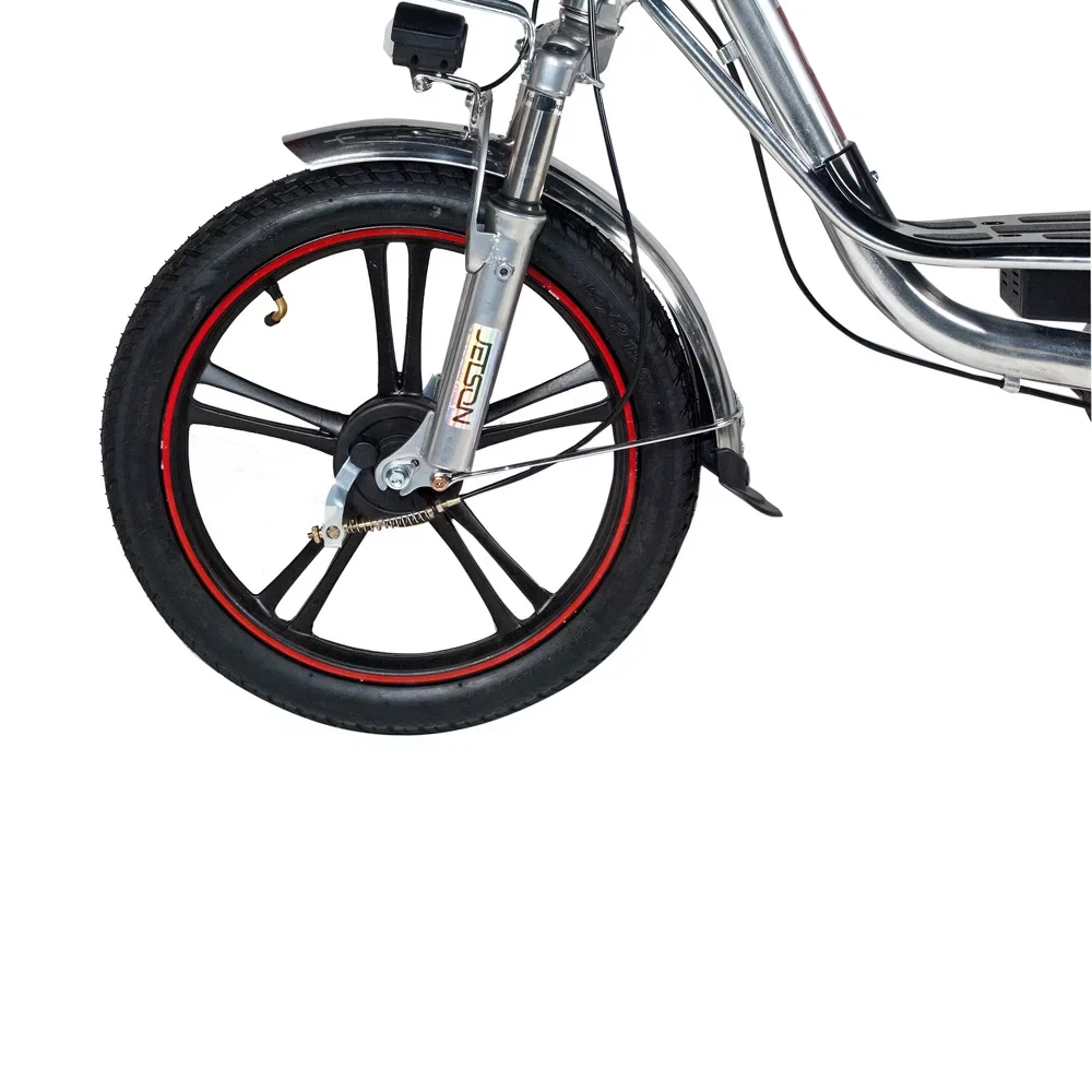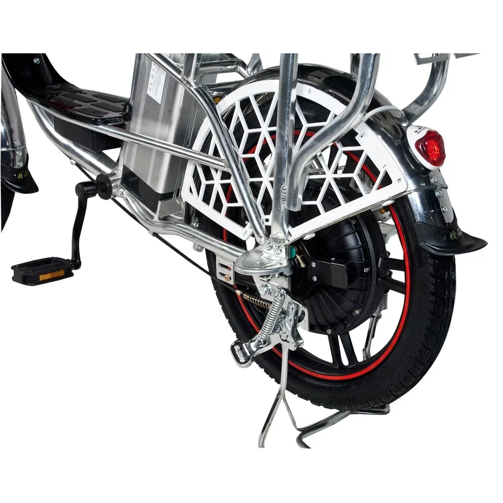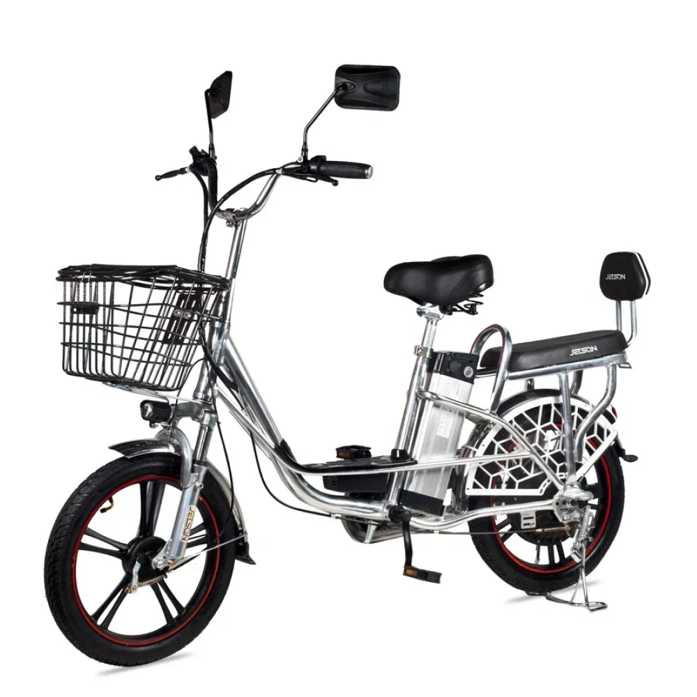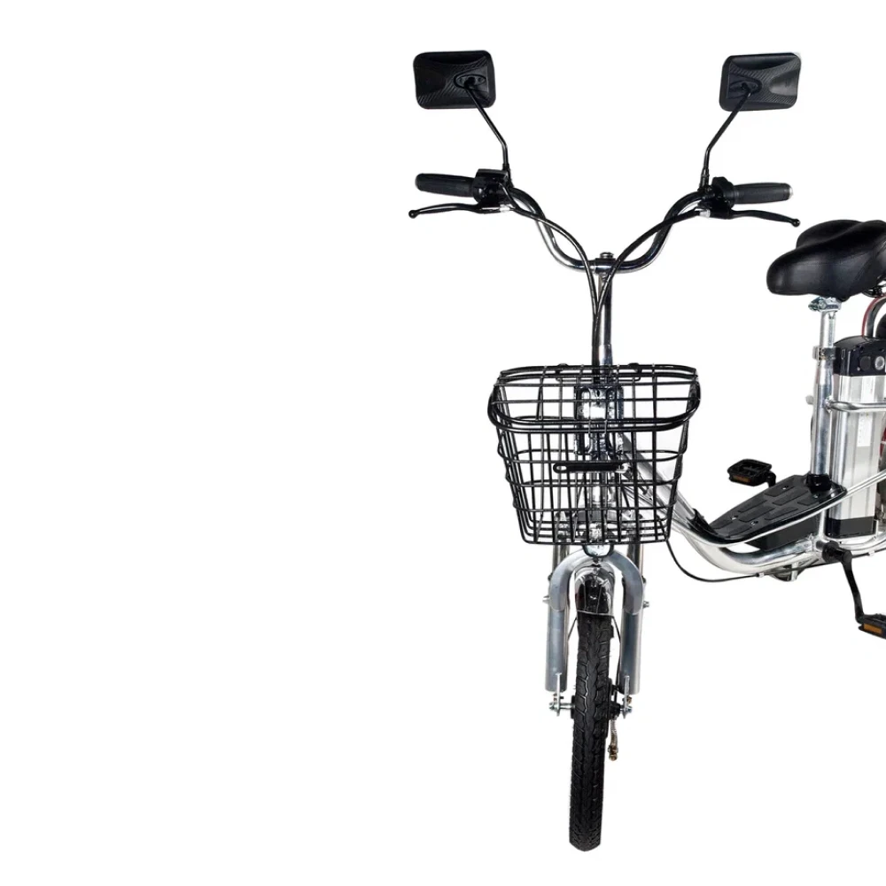 Рама электровелосипеда низкая, изготовлена из прочного алюминия. АКБ размещено в боковое части, от сидения, не мешает при движении. Наличие передней корзины и удобное подножки увеличивает сферу применения электровелосипеда. Техника удобна не только для активного время провождения, но и поездок в магазин. Проблем с парковкой не возникает. Для покупки тс сейчас предлагаем связаться с нами в онлайн-чате или позвонить по телефону.