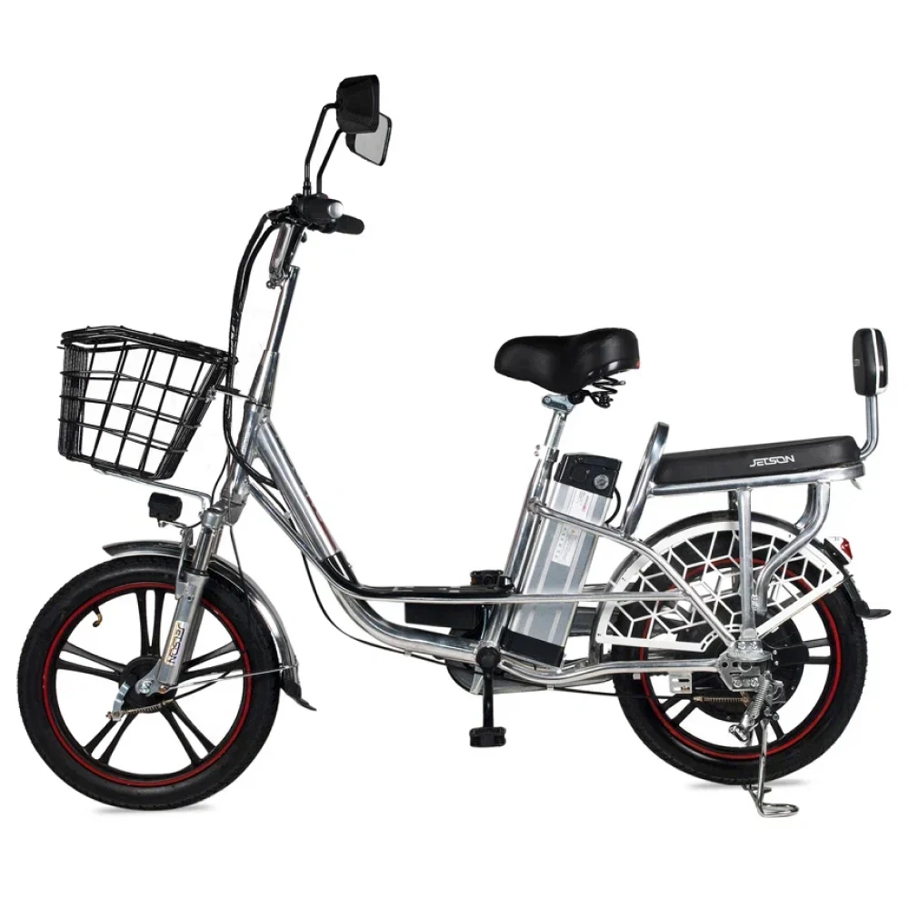 ЭЛЕКТРОВЕЛОСИПЕД JETSON V8 PRO 500W (60V/12AH) с черными дисками – современная модель электровелосипеда ожидает своего пользователя. Модель изготовлена с учетом пожеланий пользователей, рассчитана на максимальную нагрузку 200 кг. При весе 28 кг техника выглядит компактно и эргономично, без труда находит место в гараже и квартире. Купить электровелосипед выгодно, воспользоваться бесплатной консультацией и другими приятными фишками предлагает наш интернет-магазин.