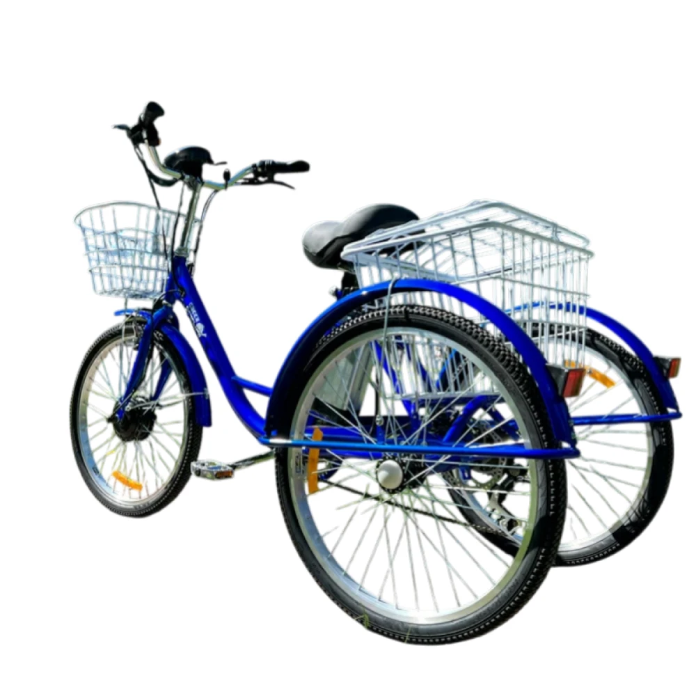 Для 16+, рост 150–185 см, новичков, пожилых, курьеров, людей с ограниченными возможностями (стабильность без баланса). Цели: работа/прогулки/доставка с грузом 50 кг в корзинах. Корзины удобны для дачи/рынка.