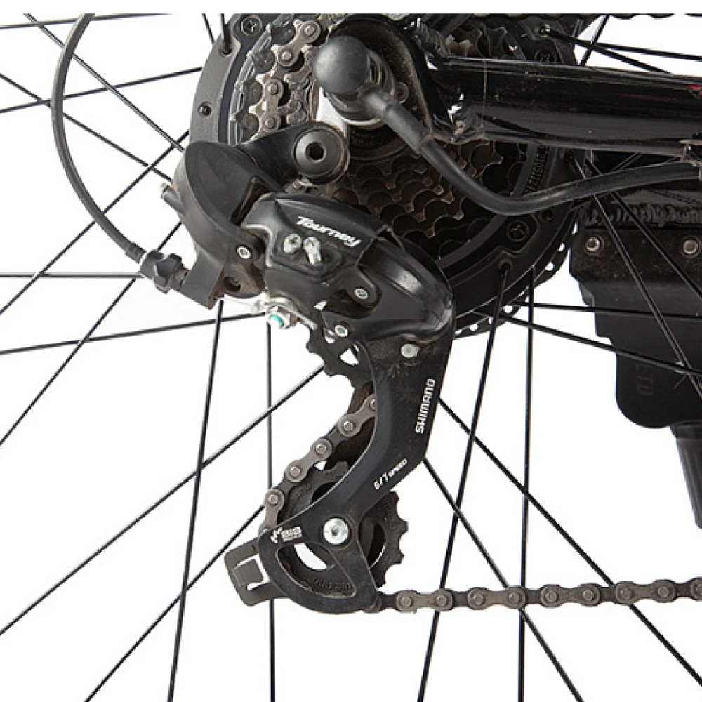 Модель укомплектована усиленной амортизационной алюминиевой вилкой, данная конструкция способна выдерживать до 110 кг. Вес самого гибрида 21 кг.
